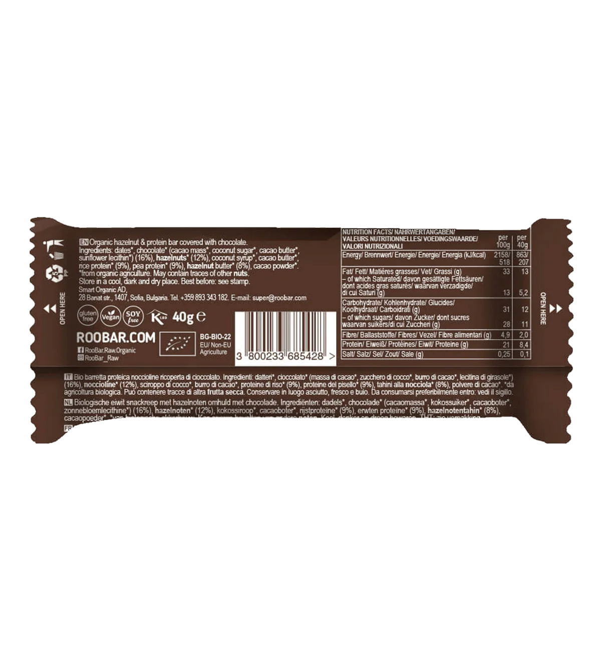 Genieße unseren köstlichen schokoladenüberzogenen Proteinriegel mit ganzen Haselnüssen! Perfekt für den kleinen Hunger zwischendurch oder als Energieschub nach dem Workout.